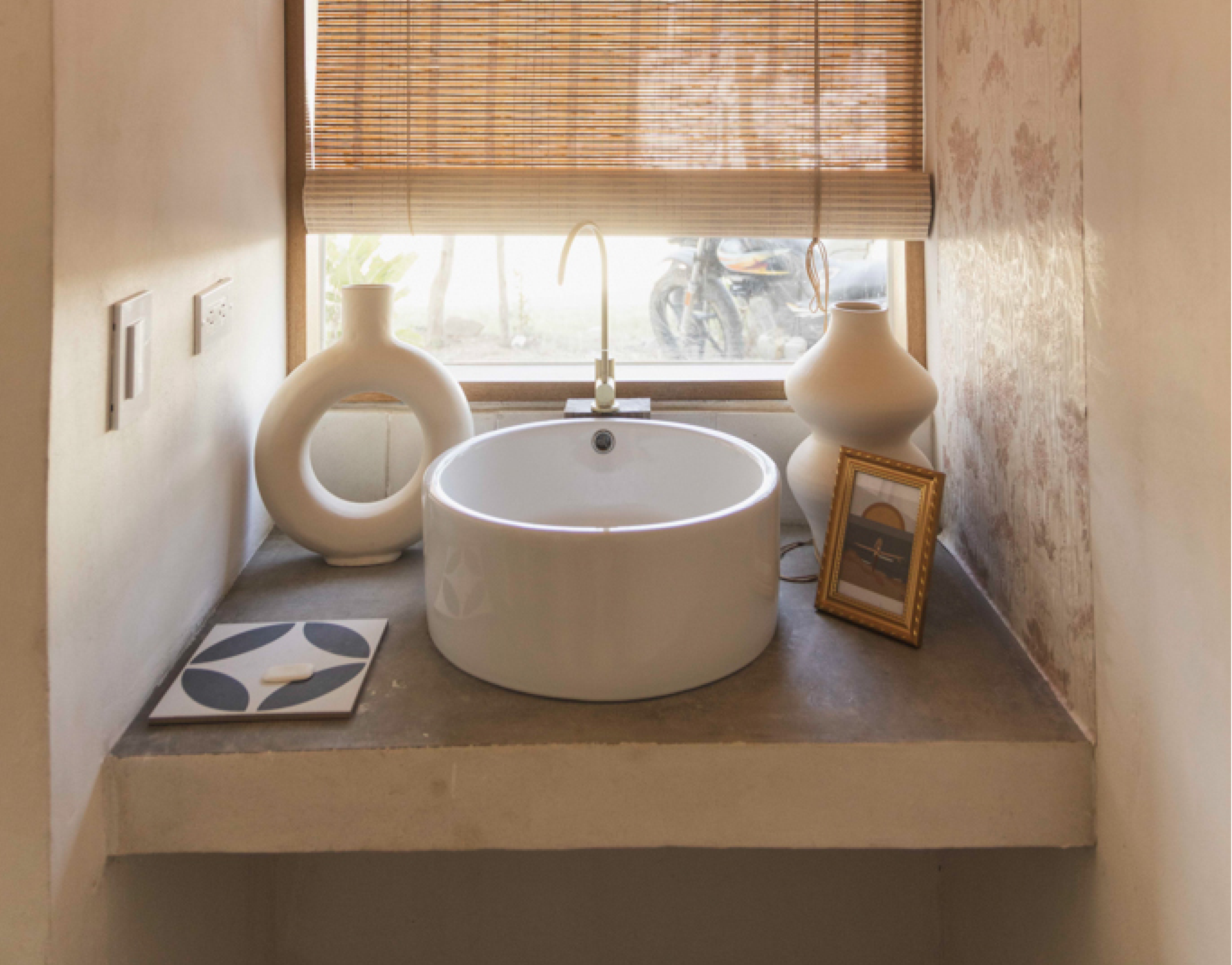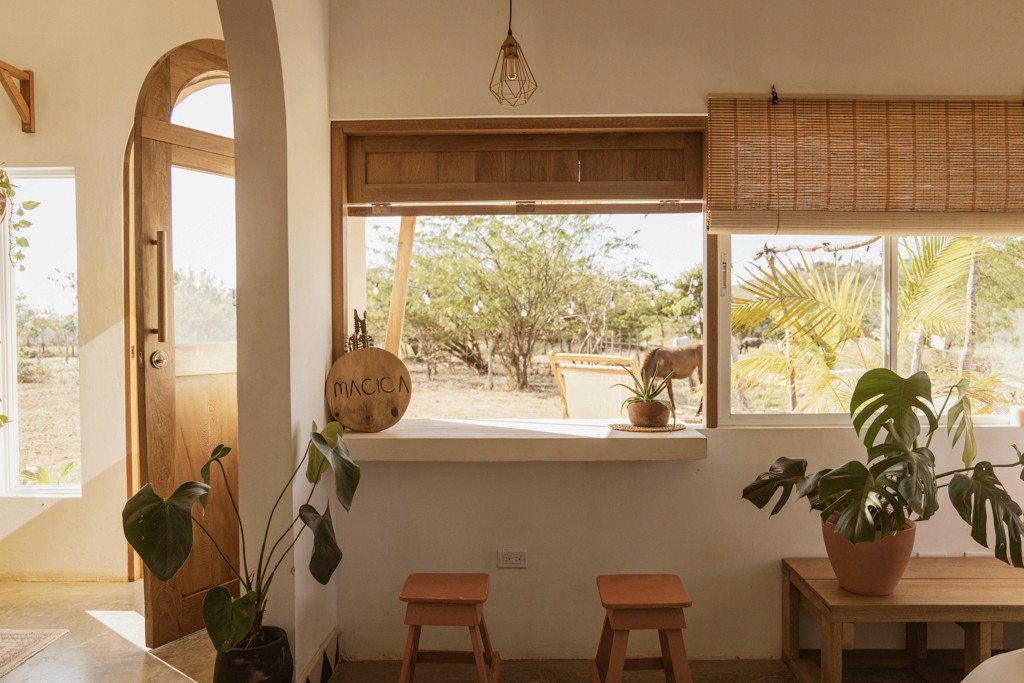 This kitchen interior design project in Nicaragua focuses on material transitions and crafted details. Wooden columns are intentionally separated from concrete walls, highlighting the honesty of each material and adding visual depth. Curved wall edges soften the geometry and enhance the flow of natural light, creating a warm, enveloping atmosphere.